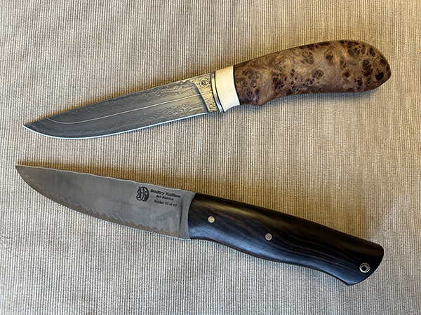 Два ножа, пришедших мне в последние дни 2022 года - от Ильи Куликова - верхний; и от Димы Куликова - нижний.