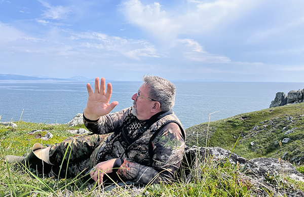 Вещаю о чём-то Миру и Риму с мыса Евреинова, Охотское море.