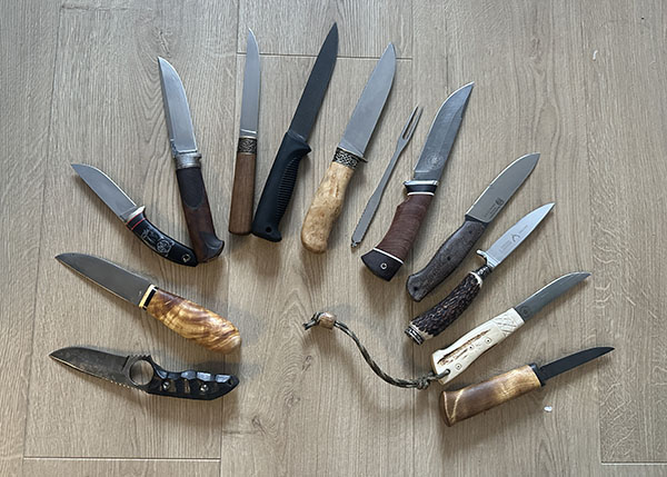 Четвертый слева - нож "Мохнатый бог", мастерская АРМ.