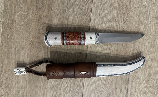 Пришёл саамский нож от мастера Игоря Баруткина из Ловозера. Материалы - олений рог, стабилизированная карелка. Клинок Алексея Скрыльникова. Кто знает, тот поймёт. 243