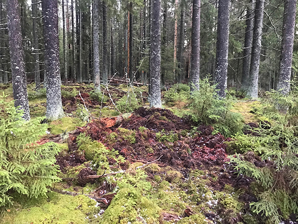 Должен сказать, что даже в Приморье таких не видел. Но здесь уж больно субстрат для них благодарный. Думаю, что, кроме того, что хрюны здесь что-то искали, они и просто копались для удовольствия - типа как медведь когтит пенопласт или надутую резиновую лодку,