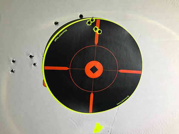 А это тоже пять выстрелов из того же штуцера (пробоина с белым бэкграундом - отвалившаяся заклейка от каких-то прошлых стрельб.