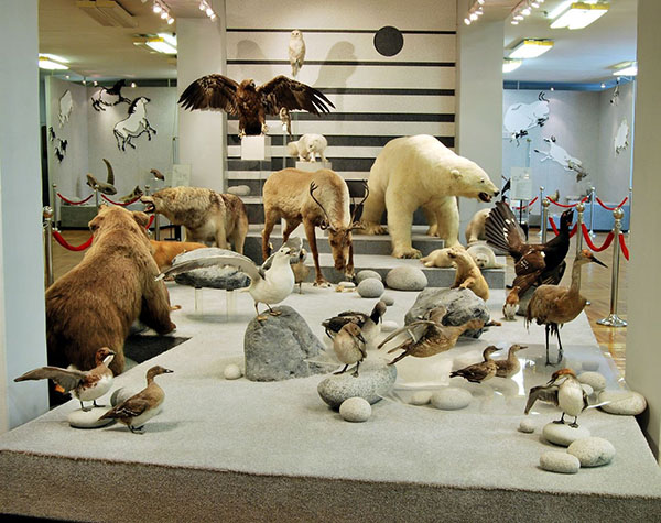 Над чучелами в региональных краеведческих музеях принято издеваться. В общем-то, количество всякой люти в них таково, что на какую-то одну страшилку всегда находится другая, ещё более забористая. Например, супротив медвежьей шкуры, натянутой на волчий череп в Красноярском краеведческом музее, обязательно найдётся кейп северного оленя с рогами, установленными штангами вниз, так что они образуют роговой хомут вокруг шеи (в Бурятии).