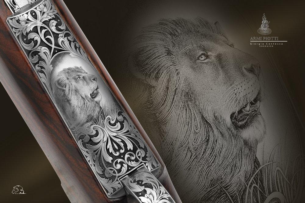 Джиорджия работает исключительно руками, используя резец, иглу или резец с молоточком, делая всечку драгоценными металлами. Она превосходно владеет изображением сцен охоты, орнаментальной гравировкой, сценами в стиле ню и фэнтези. Работая с пожеланиями заказчиков и творчески осмысляя их, Контесса создаёт на основе их запросов настоящие произведения искусства. Предварительное обсуждение работ всегда приводит к замечательному результату.