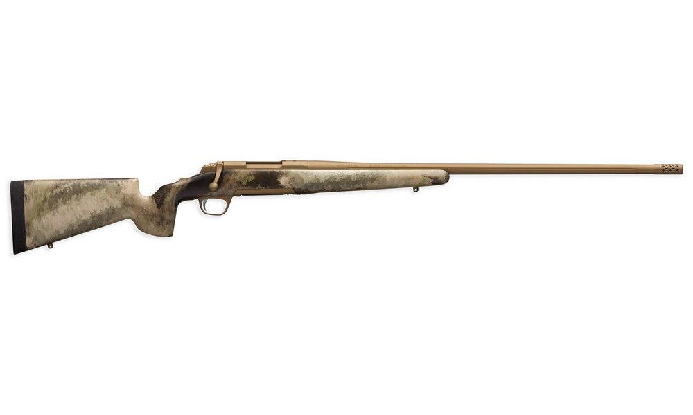 Начнем с карабинов. Карабин X-Bolt Hell’s Canyon (компания выпускает свою продукцию еще под двумя брендами – Hell’s Canyon и Dirty Bird) в расцветке A-TACS AU и с покрытием Cerakote (это сверхстойкое керамическое покрытие металлических частей и деталей) цвета «отожженная бронза» на стволе и ресивере. Ствол с каннелюрами штатно комплектуется дульным тормозом/пламегасителем. Под патроны .243 Win., 6,5 Creedmoor, .308 Win., 7 мм-08, .270 Win., и .30-06 карабин будет выпускаться со стволом длиной 56 сантиметров, под патроны .270 WSM и .300 WSM – со стволом длиной 59 сантиметров, а карабины под патроны .26 Nosler, 7 мм Rem. Mag. и .300 Win. Mag. – со стволами длиной 66 сантиметров. Среди дополнительных опций – УСМ с возможностью регулировки усилия на спусковом крючке, отъемный роторный магазин и патентованная конструкция быстрой установки оптического прицела X-Lock.