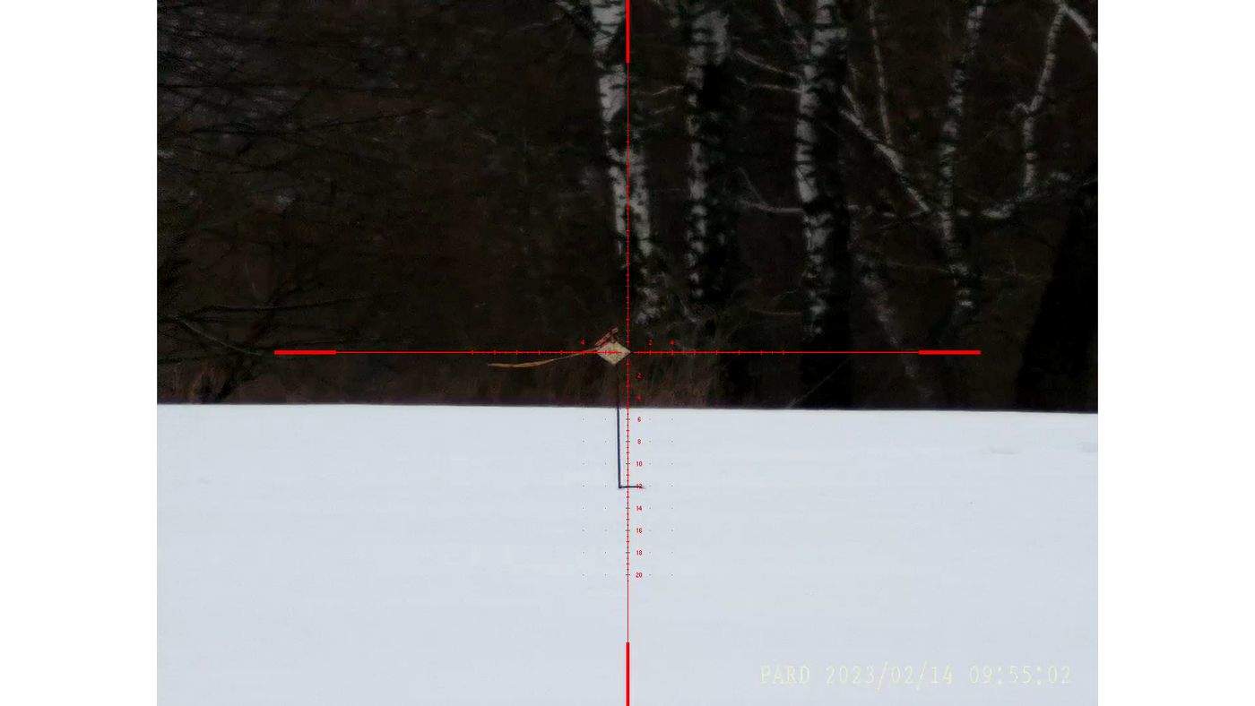 Размер и вес прицела просто вне конкуренции. По ощущениям, он почти в 2 раза меньше безраздельно господствовавших до него на рынке цифровых прицелов Yukon. По факту это ~650 г с кронштейном, что ниже всех конкурентов, и на ходовой охоте это особенно ценно.