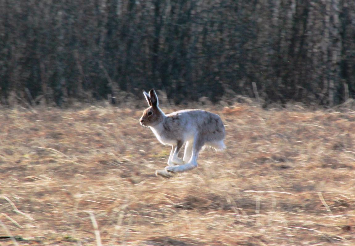 Следующее утро решаем посвятить охоте на тетерева из шалашей. Распределяемся попарно тем же составом. У нас с Алексеем утро проходит безрезультатно – со времени установки шалаша ток немного сместился, и несколько часов мы просто любуемся косачами, токующими метрах в 80 от нас. Отсутствие добычи было несколько скрашено наблюдением за интересными картинами из жизни весенней природы. Сначала на ток вышла лисица и безуспешно пыталась скрасть тетеревов, которые разлетелись в стороны перед ее носом. Сразу же после исчезновения рыжей плутовки косачи вернулись к своему занятию. А почти перед самым затиханием тока к нам прибежал уже порядком посеревший беляк, которого даже удалось сфотографировать из шалаша.