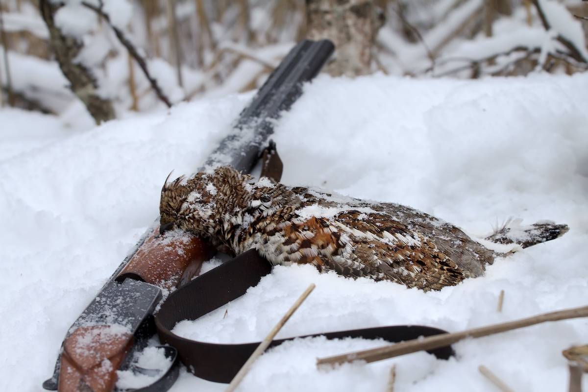 Раньше я зимой стрелял самокрутом: на глухаря – 1 или 0, тетерев/куропатка – 3, рябчик с лунок – если специально, то 7, а если так, попутно, то тоже 3, всё равно обычно краем цепляешь. С патронами на ходовой зимой, когда –20…–25, да и –15, не очень просто. За пазухой держать хорошо, но если зарядил и сразу не выстрелил, в патроне быстро выпадает конденсат и качество выстрела падает. Если всё время на холоде, тогда заряжать надо специально: навеску пороха «Сокол» на 0,1 или на 0,15 г больше, даже на 0,2. Но тогда это только для зимы и низких температур, весной надо подальше прятать. Несколько лет назад прочёл статью о тесте зимних патронов Azot Profi Winter, попробовал – и зимой теперь ими охочусь. Даже как-то так получилось, что сначала пачка «пятёрки» на пробу досталась, и первого, кого я этой «пятёркой» добыл, был глухарь метров на 30 при температуре –27. Чисто бит, и даже крылья ему переломало. В общем, теперь Profi Winter 5 и 3 – основные зимние «птичьи» патроны. Для рябчика, конечно, крупновато, но для куропатки и тетерева самое то, и для глухаря с лунок тоже. Главное, весной по гусю или глухарю эти патроны не сильно «дерутся», не страшно перепутать.
