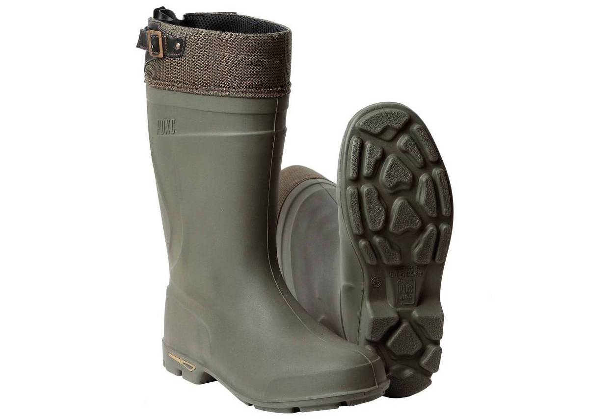 Сапоги выполнены из вспененного полиуретана, голенище с матовой поверхностью и плавными линиями дополнено манжетой из «оксфорда» (водоотталкивающего материала) с настрочными кожаными деталями. Облегание манжеты по ноге регулируется с помощью ремешка и пряжки. Вкладная стелька из вспененного материала и удлинённые термоноски делают эту модель комфортной демисезонной обувью.
