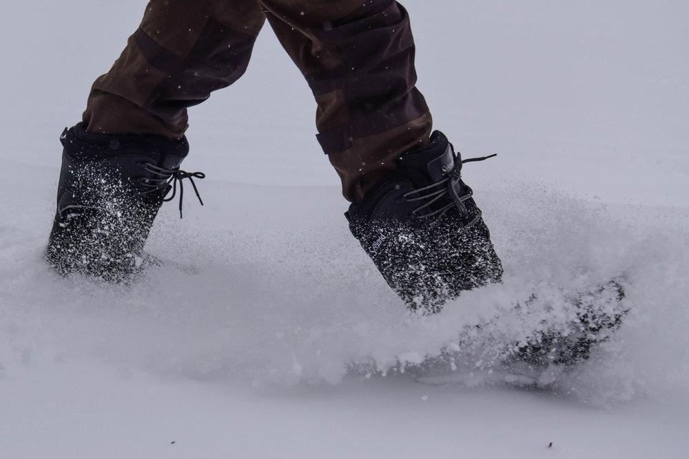 Хотя сапоги имеют очень высокое голенище, сделанное из синтетической ткани, «язык» сапога довольно длинный и соединен с голенищем специальными тканевыми непромокаемыми вставками, которые сильно увеличивают «жерло» сапога. Это позволяет легко надевать и снимать сапог и вставлять внутренний вкладыш. В то же время это нисколько не препятствует плотной шнуровке сапога, за счет чего нога надежно зафиксирована, а снег не попадает внутрь.