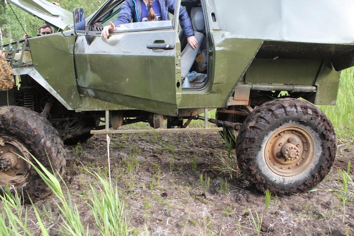 Дальше – ходовые испытания. Так как потенциал у машины явно был, но опыта управления подобными агрегатами не было, решили начать с малого – проверить «Зверя» на управляемость и ходовые качества. Но, как это часто случается, небольшое приключение превратилось в весёлое мероприятие. Итак, по порядку. Созвонились с товарищем Лёхой (Run), договорились о встрече. Выехал из дома – и сразу первая поломка: сорвался шланг и тосол брызнул во все стороны, я из машины вылетел быстрее, чем понял, что случилось. Соединил, долил воды, и в путь. Встретились с Лёхой и его товарищами на трёх подготовленных машинах и все вместе поехали в самую грязь. Подъехали к первой засаде. 3 дороги: одна прямо через лужу с торфом и 2 объездных. На вопрос «куда» – уверенный ответ: «Давай по прямой!» Страшно… А что делать? Врубаю понижайку и со второй передачи ныряю прямо в это болото, думал, всё, там и останемся. Какой там! «Зверь» прёт как танк, проехали как по асфальту. Проходимость у детища – просто зашкаливающая: три подготовленных для бездорожья машины просто не решились за нами ехать. А мы и дальше выбирали только самое месиво...