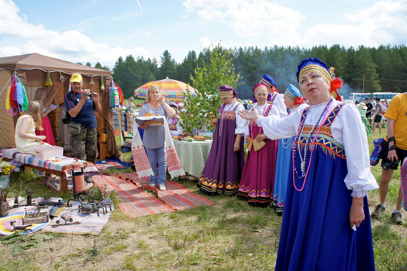 Международный фестиваль «Псков-2022» и участники фольклорного фестиваля «Соловьиная ночь», проходившего на одной площадке с кузнечным фестивалем
