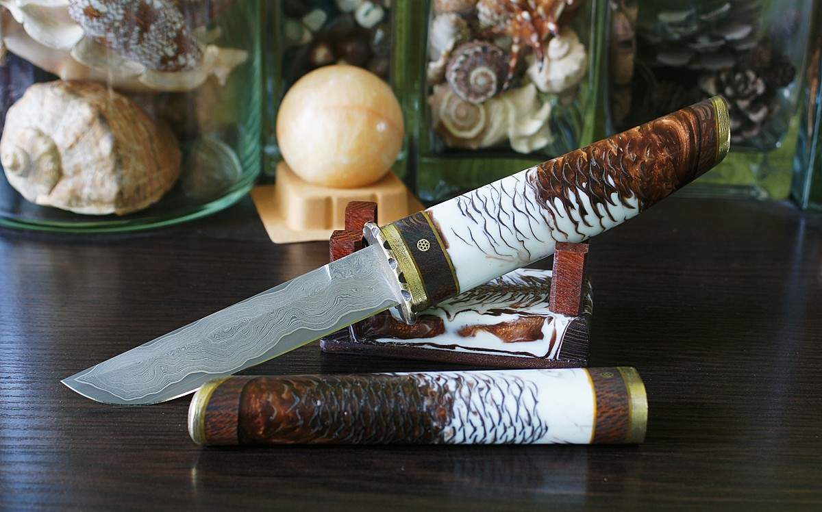 Снимки делались с большим пониманием композиции, света, цветовой гаммы, в аранжировке умело использовались различные предметы. Вообще, да простят меня наши мастера, в российском ножевом мире довольно сложно встретить человека, умеющего хорошо сфотографировать изделие – так, чтобы потом его не пришлось вытравливать и размещать на подложку. Но ещё на фотографиях мне понравились сами ножи: они выглядели очень аккуратными, изящно сделанными и содержали в себе какую-то внутреннюю улыбку, что ли. Они выглядели добрыми и оптимистичными. В общем, пошёл я в гости к Константину Миленину.