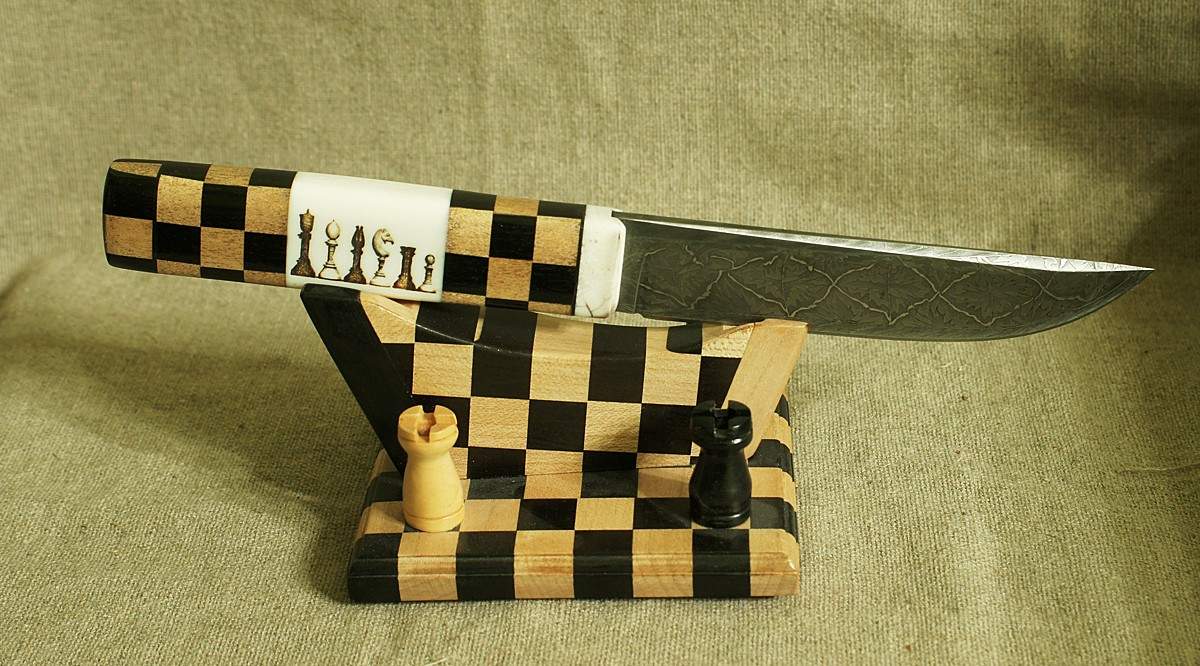 – Есть «полочники», но есть всякие. Например, кухонные ножи для использования на природе. Или вот – нож грибника. Или вот: заказчик – охотник, попросил охотничий нож сделать согласно своим требованиям.
