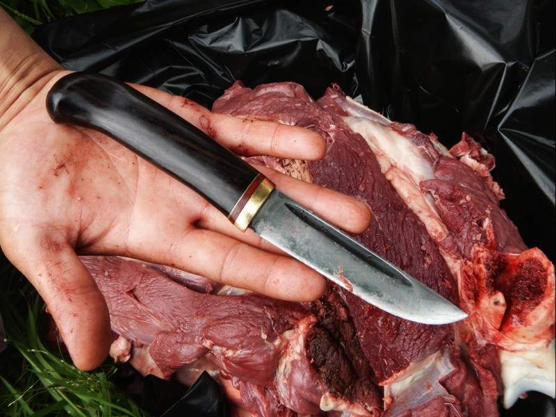 Естественно, работает Алексей на охоте именно своими ножами. Ножи у него добротные, резкие, и все какие-то… ну, очень натуральные. Как и их создатель.