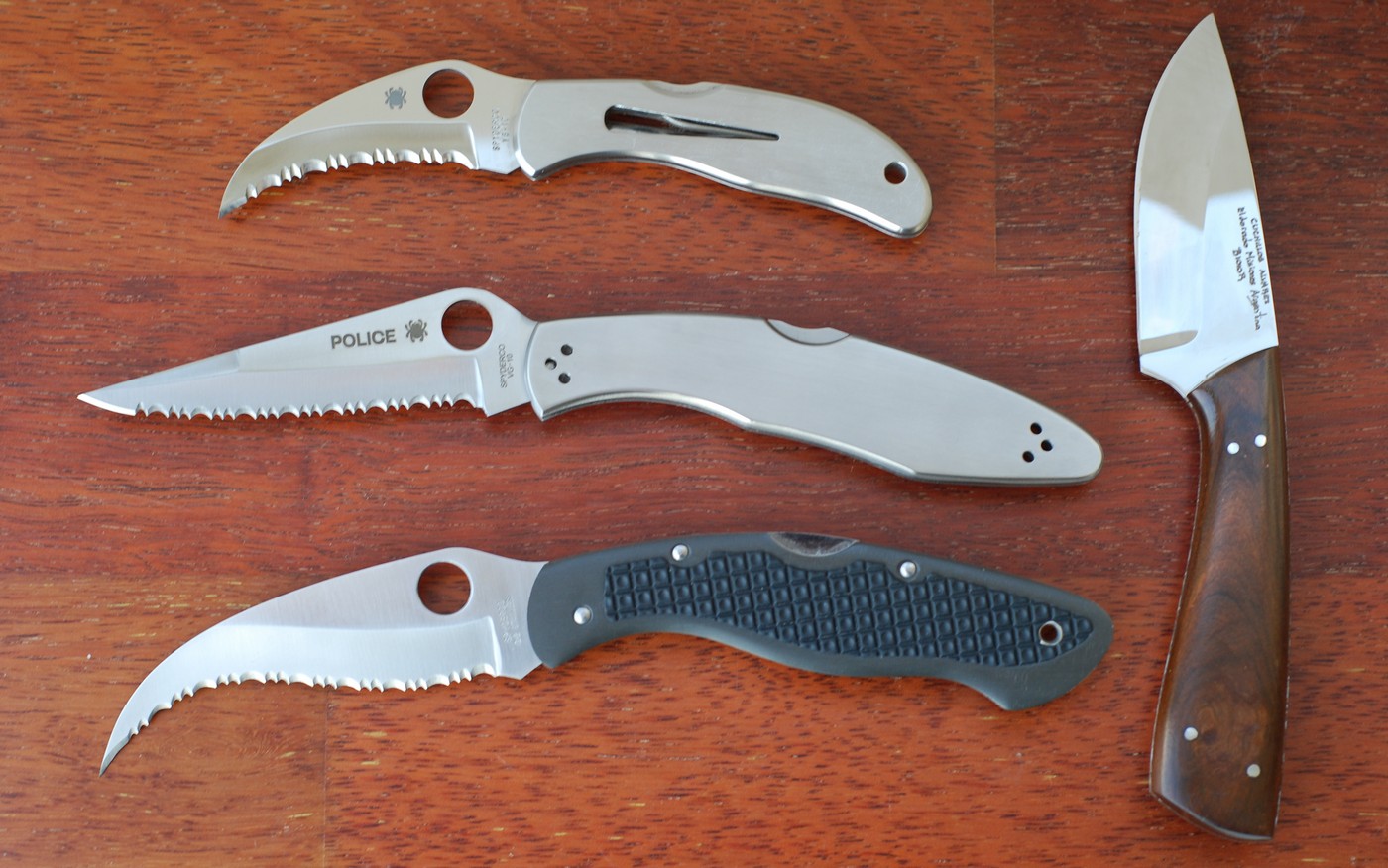 «Парадный», но при этом вполне практичный гарнитур из Spyderco Police и Spyderco Harpy, кастомизированных Santa Fe Stoneworks