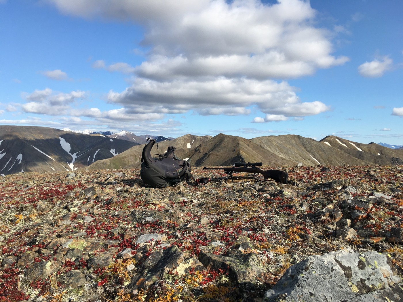 Теперь о тактике действий. Обычно это происходит так: я захожу в намеченный район, нахожу воду, ставлю палатку и оттуда уже выхожу в поиск. Бывало у меня так, что поиск может растянуться на два дня, поэтому в рюкзаке всегда горелка, одежда по максимуму, аптечка, связь, маленький тент и немного еды. Если нахожу объект охоты, то работаю до финала, невзирая на удаление от лагеря. Один раз спал на тундре на снятой шкуре добытого барана, потому что на обратный путь в этот день не было ни сил, ни времени. У меня хороший бинокль Zeiss с дальномером, и он сильно сокращает количество пройденных по хребтам километров. Обычно я выбираю господствующую высоту или удобный гребень и наблюдаю до тех пор, пока или не просмотрю весь сектор или не увижу объект охоты. Если не увидел, двигаюсь дальше, руководствуясь логикой рельефа и собственным опытом.