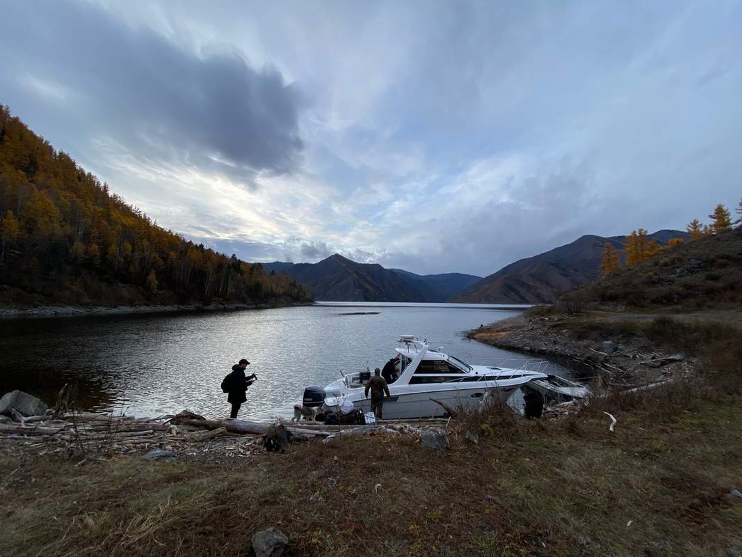 И вот через полторы недели после этого разговора, в середине октября, мы с друзьями снова оказались в Хакасии. От Томска, где я живу, до посёлка Черёмушки на берегу Енисея, где живёт Дмитрий, ехать на машине 7–8 часов. Дело в том, что до угодий «Иджир» нужно добираться на катере по водохранилищу в течение четырёх часов. Валерий Анатольевич предложил встретить нашу компанию на своём плавсредстве неподалёку от ГЭС. Но я созвонился с Дмитрием и договорился об использовании его быстроходного катера, чтобы добраться в Ермаковский район.