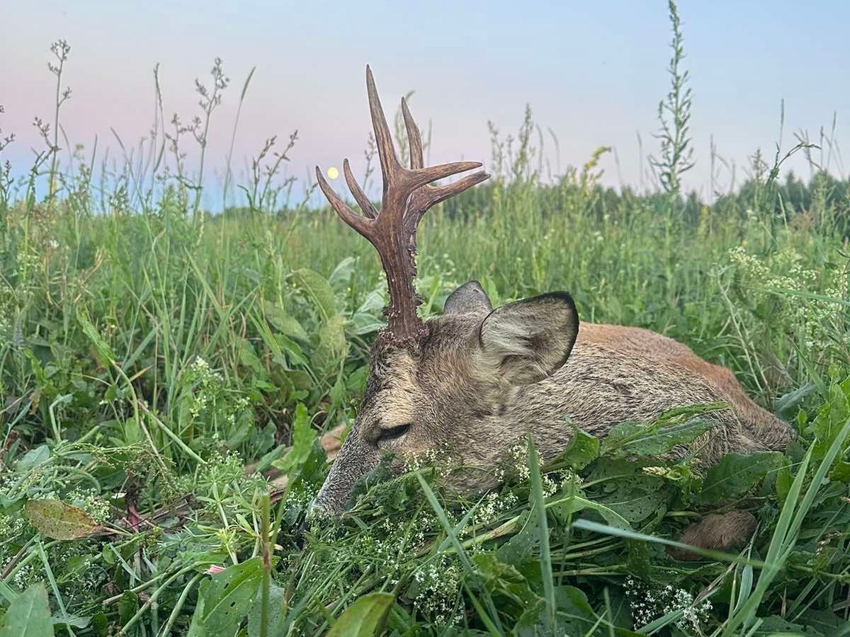 Несмотря на волчий «уклон», козла в Брагине тоже немало, а трофейного – так и побольше, чем в других хозяйствах. Если интересно взять именно трофейного козлика, то в Брагинском БООР это можно сделать с наибольшей вероятностью. Я, например, добывая десятки козлов за сезон, своё первое «золото» привёз именно отсюда. (А вообще первая поездка в Брагин принесла пять медалей.) Территория хозяйства захватывает разные ландшафты. К северу больше классических полей и перелесков, а к югу – лесов, лесных сенокосов, пойм, балок и пр. Охота очень разнообразна и интересна. Конечно, самая верная пора – это начало сезона, до подъёма посевов и трав выше уровня колена. С другой стороны, июнь интересен тем, что уже начинаются активные перемещения доминантных козлов в поисках будущих мест гонов. Обычно к этому времени уже достаточные площади выкошены, и именно на кошенном проходят охоты. Но в этот раз из-за дождей земля размокла, техника вязла и с сенокосами припозднилась. Охота во второй половине июня получилась очень трудовой, тем не менее было добыто много достойных трофеев.