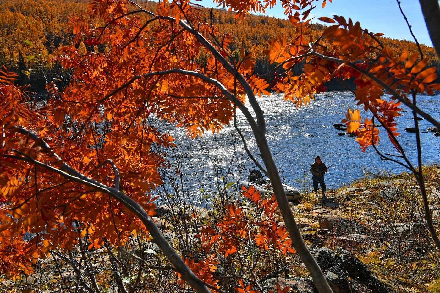Четыре года назад я начал прихрамывать, и ходить по берегам Тимптона стало всё сложнее. А охотиться как-то надо, без древнего промысла чувствую себя некомфортно. И я изобрёл оригинальный, на мой взгляд, способ охоты на рябчиков. Наверное, он не новый, и кое-кто из партии «зелёных» назовёт этот способ охоты браконьерским, но это с какой стороны посмотреть. Дело всё в том, что применим он только на тихих спокойных плёсах реки и там, где растёт смешанный лес из ели, берёз, рябины, черёмухи, близко подступающий к берегам реки. Таким идеальным местом оказался участок реки Тимптон – от бурного порога Темерюктас до порога под названием Каменная Гряда. Расстояние в четыре километра можно проплыть на гребной лодке за три часа, лениво перебирая вёслами, любоваться северными пейзажами, слушать и слышать все осенние природные звуки.