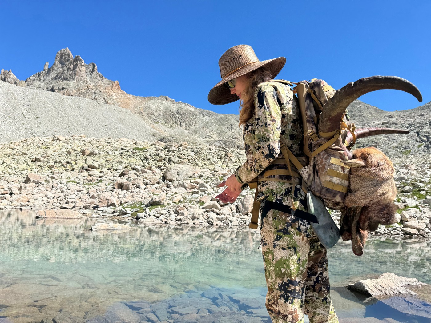 Поднявшись на седловину, расположенную на высоте 3 километра над уровнем моря, и разместившись на небольшом карнизе в 300 метрах правее, прямо под собой на дистанции 234 метра, на сером каменистом рельефе в прицел я увидела великолепного рогача. Апгрейд винтовки в виде доукомплектования её двухкамерным ДТК, а также регулярные тренировки стрельбы из неустойчивых положений позволили избежать приключений в виде преследования подранка и добора 11-летнего красавца-тура. Пуля прошила убойную зону насквозь, не раскрывшись, но поразив всё, что было необходимо для моментального падения трофея.