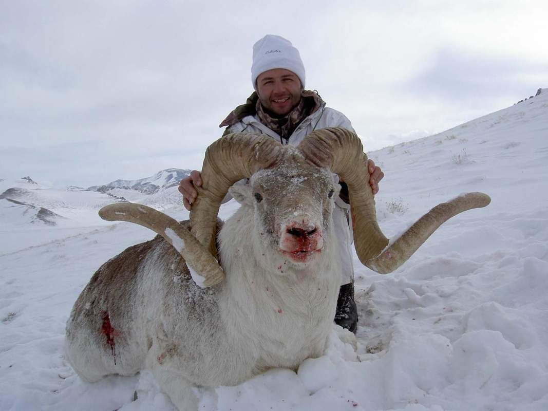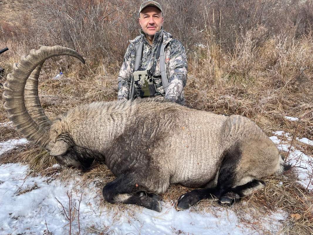 Владимир Мельников (далее – В. М.): Первым моим трофеем стал горный козёл, и добыл я его в Казахстане в далёком уже 1995 г. Было мне тогда 30 лет. После этого много охотился на горных полорогих в Киргизии, Таджикистане, Казахстане. В моей коллекции есть даже карагандинский аргали. Разумеется, добывал снежных баранов, добывал туров в России и Азербайджане. Какое-то время посвятил испанским горным козлам, сернам, обитающим в Альпах. В 2002 г. сбылась моя заветная мечта: добыл белого барана – барана Далла в Канаде. Последние три года успешно охотился в Мексике на гривистого барана, в России – в Саянах и на Кавказе. Одна из недавних поездок состоялась в ноябре 2024 г. в Киргизию.