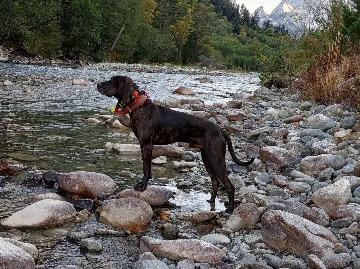 К сожалению, поехать с собаками в мае на Север, как я собирался, не получилось. Весна 2025-го у нас выдалась очень дождливая, выходов было немного. Тем не менее дважды мои собаки работали медведя (не в родной Карачаево-Черкессии) и оба раза показали очень долгую и длинную работу. Звери уходили в соседний район, а «пробег» собак за день превышал 60 км – это по горам и перевалам Кавказа. Как я уже говорил, вязкость у плоттхаундов бывает просто запредельная, особенно при работе в паре. По этой причине один из моих старших кобелей сейчас проживает на Севере и охотится там. У нас в районе в этот год очень много кабана, плотты изначально выводились как «кабаньи» собаки, и мне просто не хотелось угробить всю ту большую работу по постановке моих собак для охоты на медведей, которая была проделана за два года. Слишком велик стал риск переключения на кабанов: от диких свиней большинству плоттов буквально «рвёт крышу», хотя никакие другие копыта они в принципе не гоняют. На севере таких проблем со свиньями нет, и на данный момент с моим кобелём добыто уже 4 мишки.