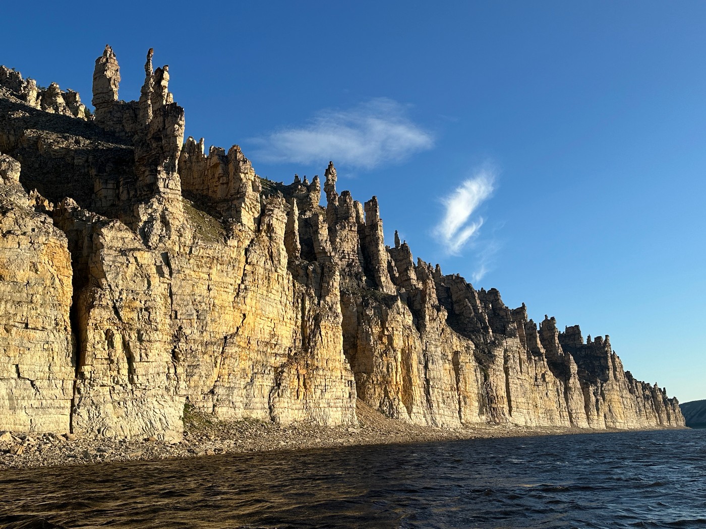 Да, грустное впечатление производят и сама Хатанга, и рассказы о былом оленьем изобилии. Но под конец моего пребывания на Таймыре судьба порадовала меня: нас с Николаем пригласил посетить туристскую базу «Котуй – Дом Тайменя» в низовьях реки Котуй её учредитель Павел Соколов. Это уже географически не Таймыр, хотя по-прежнему Таймырский район (вспомним снова про Францию и Германию вместе взятые). Это – один из полюсов недоступности на планете, Анабарское плато. Фантастически причудливый мир, мир вырезанных в известняке странных каньонов, каменных «городов» и высеченных ветром статуй – такой красоты, что захватывало дух даже у меня, человека, чрезмерно избалованного красотами береговых обрывов Охотского моря. А в этих каньонах несут свои тягучие, тёмные воды реки Котуй и Котуйкан.