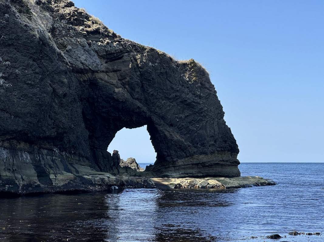 При этом медведи отсутствуют на Шикотане и следующем к северу острове в гряде – Урупе: там ширина пролива Фриза в самом узком месте составляет 40 км. Вроде как расстояние для медведя не смертельное, но все мои знакомые утверждают, что выход на остров, особенно с южной стороны, очень сложен: медведю придётся преодолевать не только сильное течение, которое есть между всеми проливами Курильских островов, но и прибойную полосу, и карабкаться в прибой на отвесные скалы – возможно, потому Уруп мишки и не заселили.